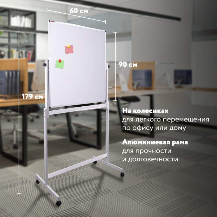 Двусторонняя магнитно-маркерная доска на стенде BRAUBERG предназначена для наглядной демонстрации графической информации при проведении презентаций, совещаний, лекций, семинаров, тренингов и других мероприятий.
