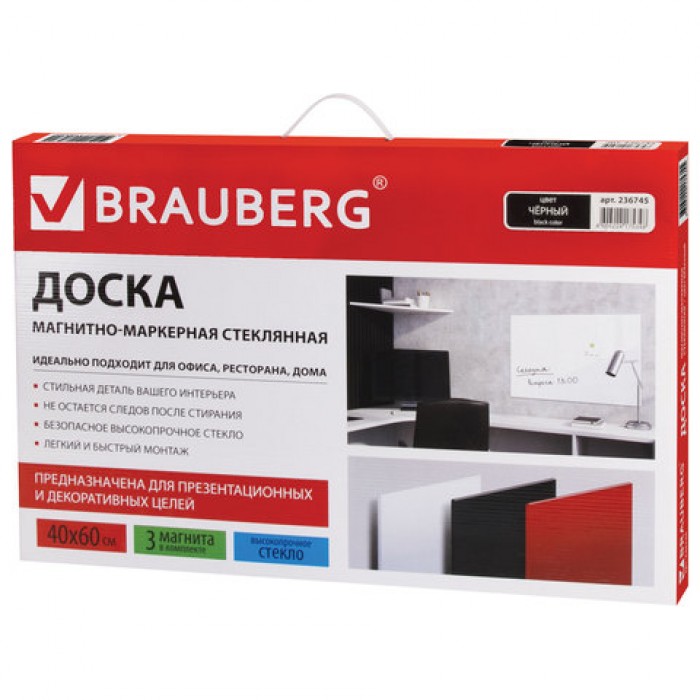 Доска магнитно-маркерная стеклянная 40х60 см, 3 магнита, ЧЕРНАЯ, BRAUBERG, 236745 в интернет-магазине AV Group по цене от 4 656 руб. с доставкой по Верхней Пышме, Екатеринбургу и Свердловской области. Минимальная сумма заказа в корзине - от 10 т.р.