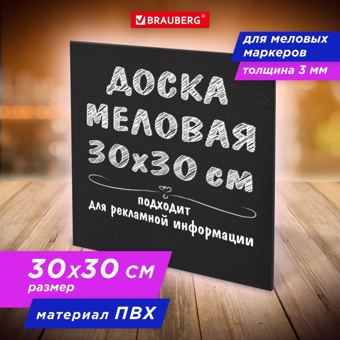 Доска меловая 30х30 см, немагнитная, без рамки, ПВХ, ЧЕРНАЯ, BRAUBERG, 238316