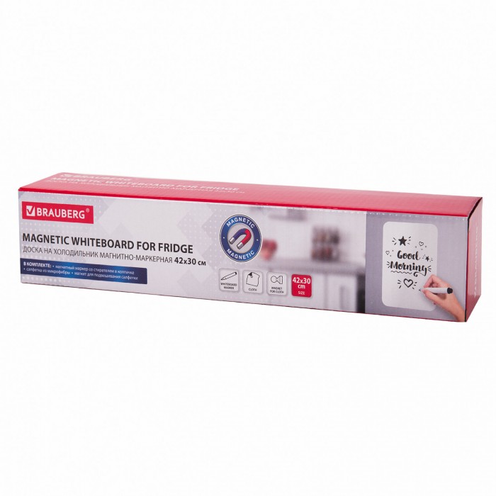 Доска на холодильник магнитно-маркерная 42х30 см с маркером, магнитом и салфеткой, BRAUBERG, 237847