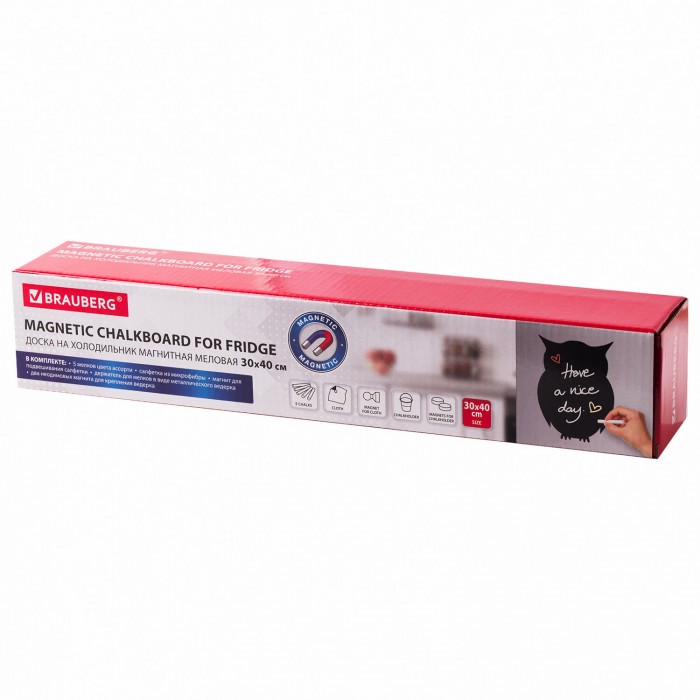 Меловая доска BRAUBERG на холодильник в форме милого совёнка предназначена для письма мягкими мелками и сухой пастелью. Это гибкая магнитная доска, которая легко крепится к гладким металлическим поверхностям и не требует дополнительной фиксации.