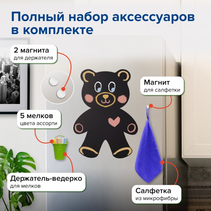 Доска на холодильник магнитно-меловая 30х40 см "Teddy Bear" с набором аксессуаров, BRAUBERG, 237841