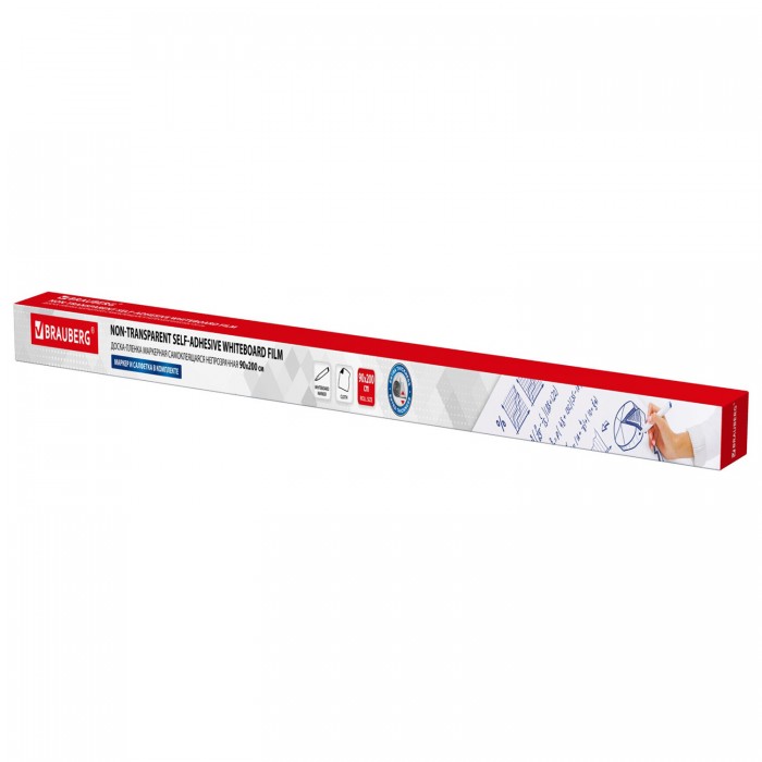 Доска-пленка BRAUBERG предназначена для письма и рисования специальными маркерами для белой доски. Клеится на любую ровную поверхность. Увеличенная толщина пленки позволяет избежать проблемы с просвечиванием.