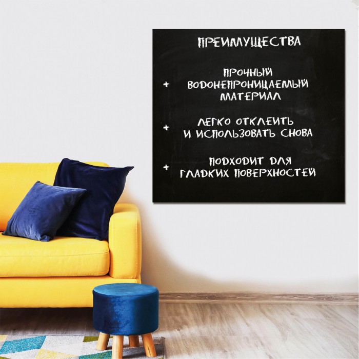Доска-панель BRAUBERG клеится на любую ровную поверхность. Черная поверхность доски предназначена для письма мягкими мелками и сухой пастелью. При желании можно разрезать рулон на разнообразные фигуры.