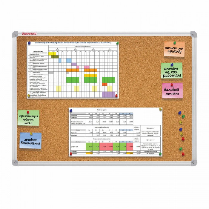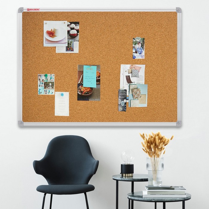 Пробковая доска BRAUBERG позволит разместить объявления при помощи кнопок и офисных булавок. Широко используется в организациях различного рода деятельности.
