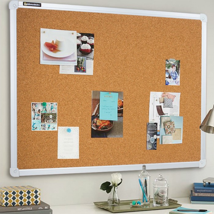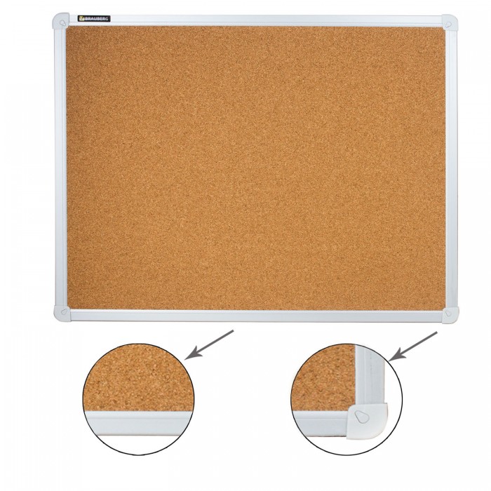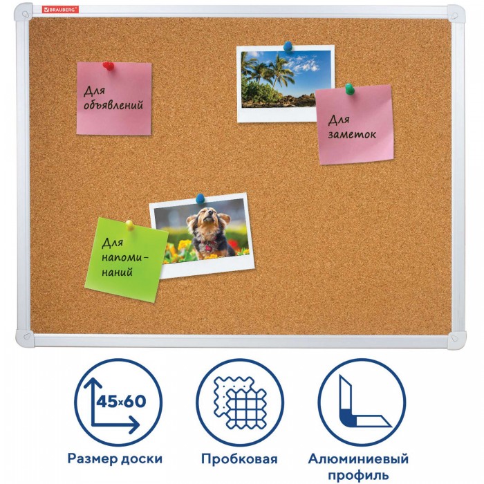 Доска пробковая для объявлений 45х60 см, алюминиевая рамка, ГАРАНТИЯ 10 ЛЕТ, РОССИЯ, BRAUBERG, 231711