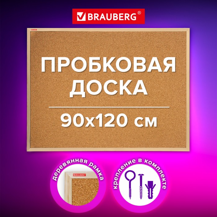 Пробковая доска BRAUBERG Wood в деревянной рамке – прекрасный выбор для размещения объявлений при помощи кнопок и офисных булавок. Широко применяется в различных организациях.