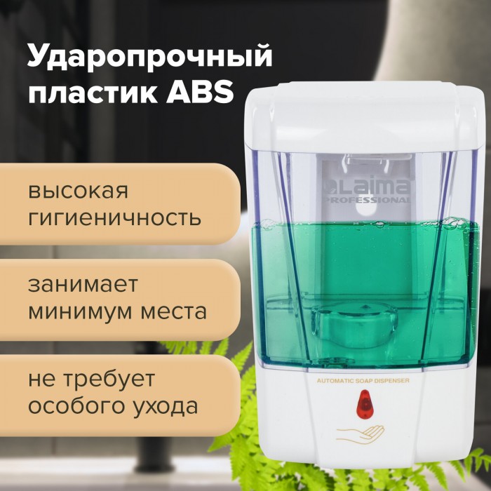 Автоматический дозатор для жидкого мыла и гелевых антисептиков LAIMA PROFESSIONAL обеспечивает экономичный расход и повышенный уровень гигиены. Предназначен для офисов, предприятий, торговых центров. Исключает контакт рук с поверхностью дозатора.