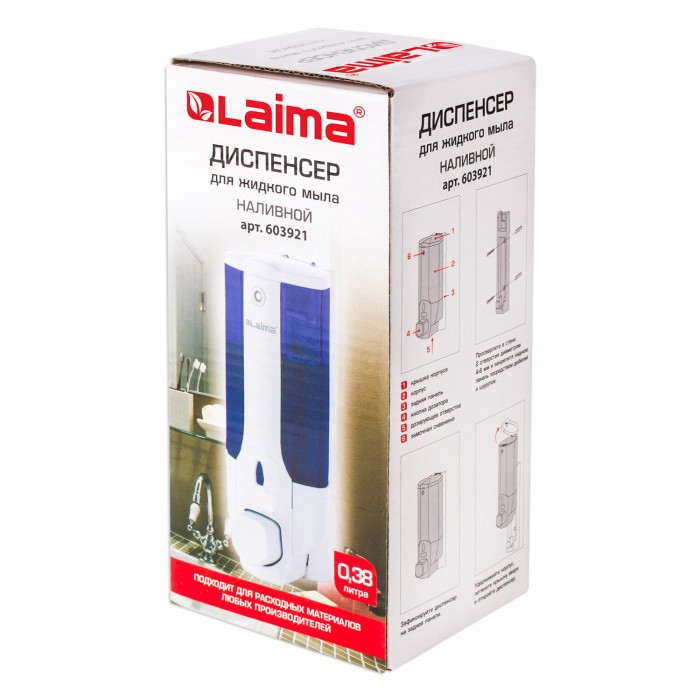 Дозатор для жидкого мыла LAIMA подходит для использования в местах с любой проходимостью, таких как туалетная комната в ресторане, офисе, торговом центре, аэропорту, вокзале.
