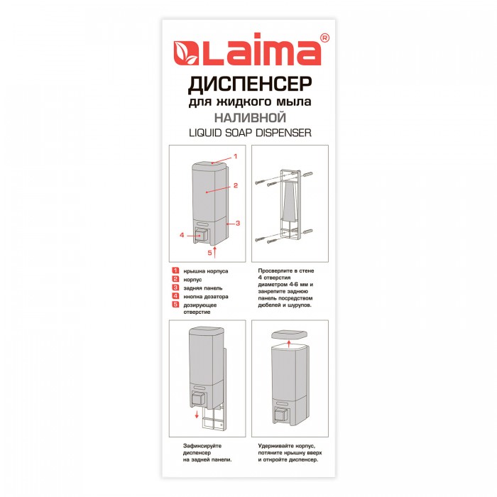 Дозатор для жидкого мыла LAIMA подходит для использования в местах с любой проходимостью, таких как туалетная комната в ресторане, офисе, торговом центре, аэропорту, вокзале.