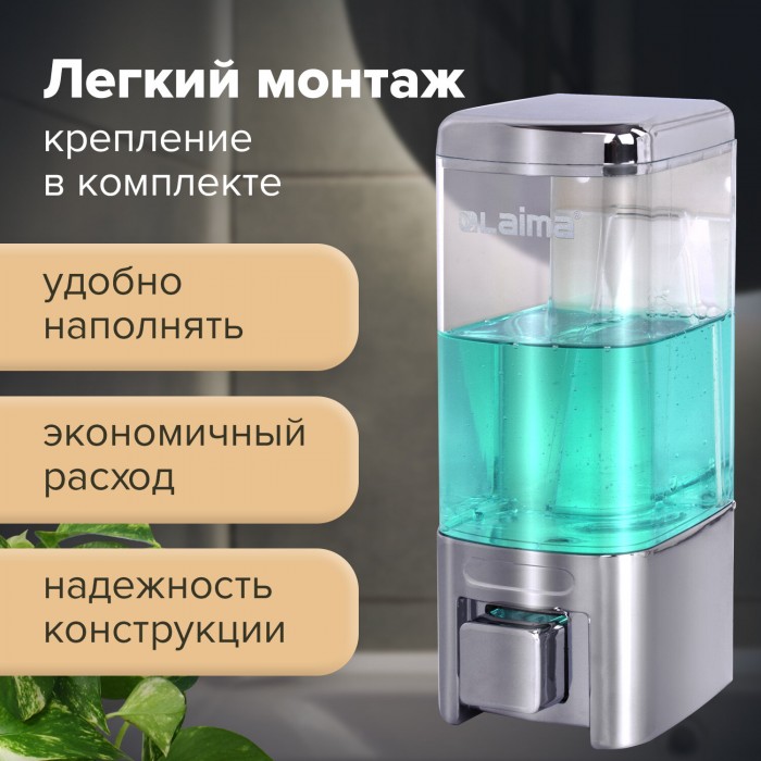 Дозатор для жидкого мыла LAIMA подходит для использования в местах с любой проходимостью, таких как туалетная комната в ресторане, офисе, торговом центре, аэропорту, на вокзале.