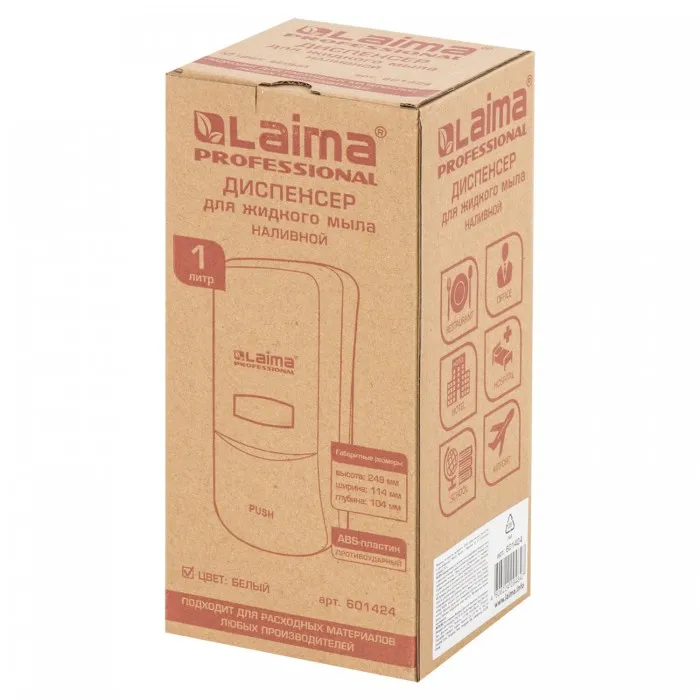 Дозатор для жидкого мыла LAIMA PROFESSIONAL подходит для использования в местах с любой проходимостью, таких как туалетная комната в ресторане, офисе, торговом центре, аэропорту, на вокзале.