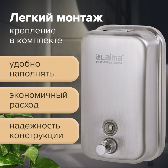 Дозатор для жидкого мыла LAIMA PROFESSIONAL подходит для использования в местах с любой проходимостью, таких как туалетная комната в ресторане, офисе, торговом центре,