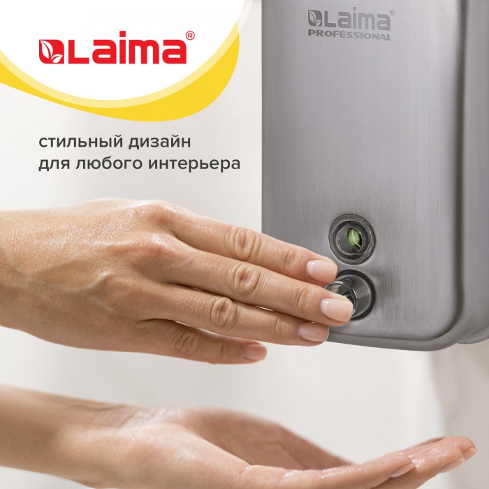 Дозатор для жидкого мыла LAIMA PROFESSIONAL INOX (гарантия 3 года), 1 л, нержавеющая сталь, матовый, 605395