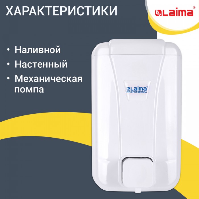 Дозатор для жидкого мыла LAIMA PROFESSIONAL подходит для использования в местах с любой проходимостью, таких как туалетная комната в ресторане, офисе, торговом центре, аэропорту, на вокзале.