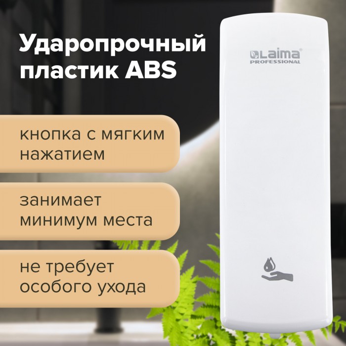 Дозатор для жидкого мыла LAIMA PROFESSIONAL ORIGINAL, НАЛИВНОЙ, 0,8 л, белый, ABS-пластик, 605774