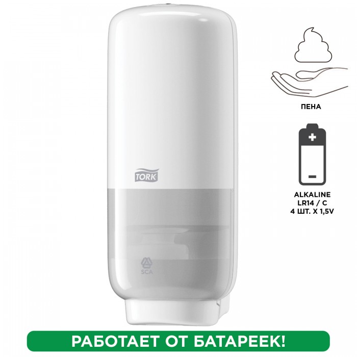 Дозатор для жидкого мыла-пены СЕНСОРНЫЙ TORK (Система S4) Elevation, 1 л, белый, 561600