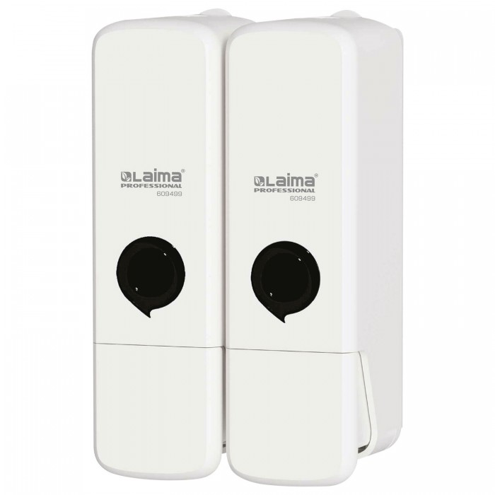 Дозатор двойной 2 х 0,3 л для жидкого мыла/шампуня/геля LAIMA SUPER, НАЛИВНОЙ, белый, 609499