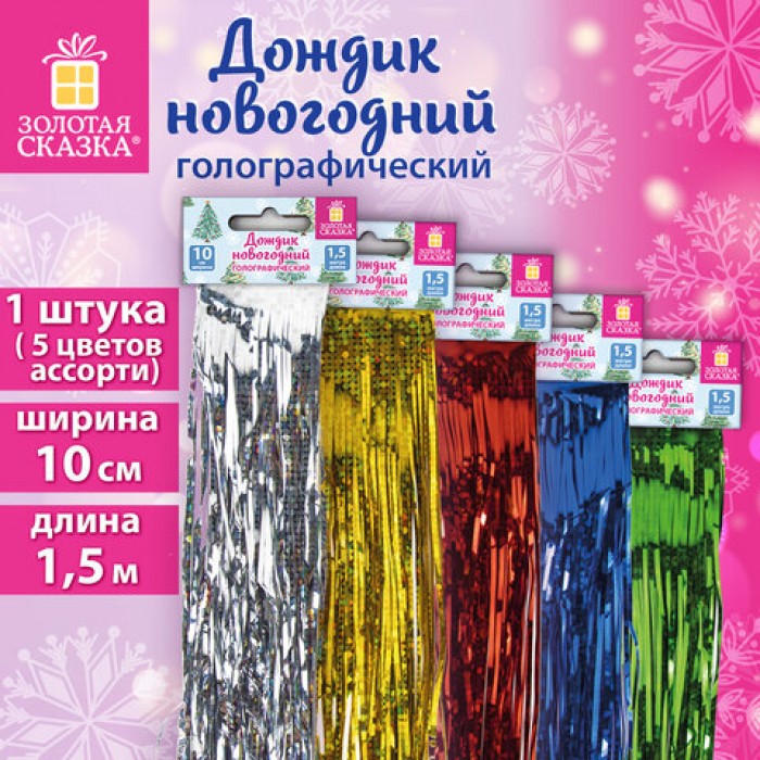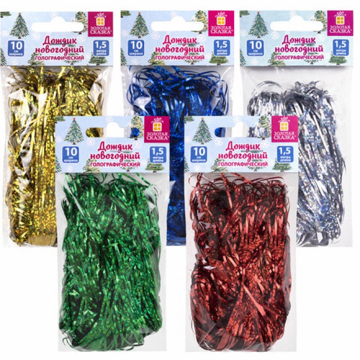 Дождик новогодний голография, ширина 10 см, длина 1,5 м, ассорти 5 цветов, ЗОЛОТАЯ СКАЗКА, 592287