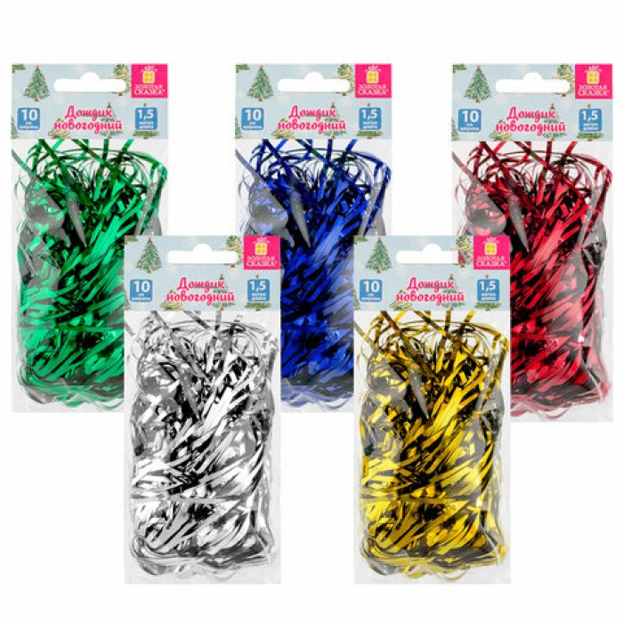 Дождик новогодний, ширина 10 см, длина 1,5 м, ассорти 5 цветов, ЗОЛОТАЯ СКАЗКА, 592289