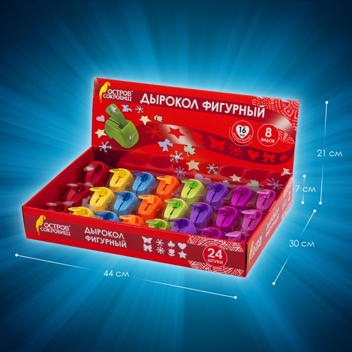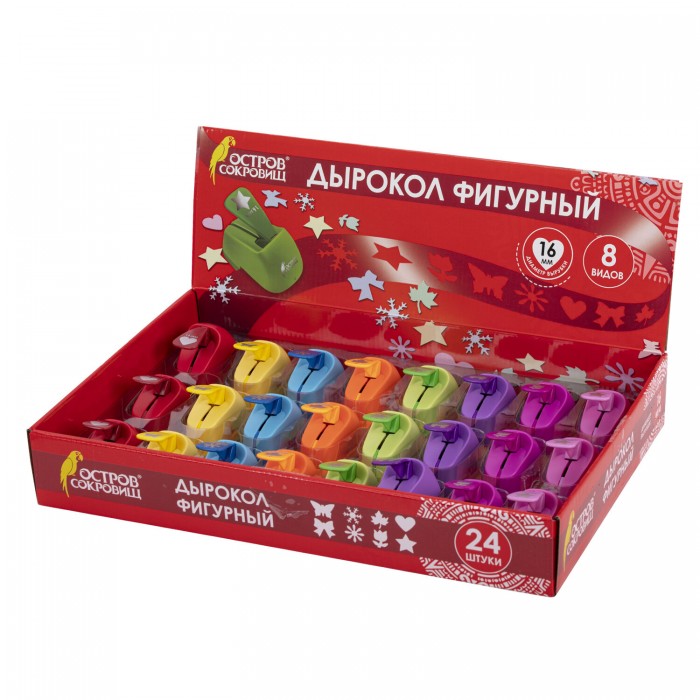 Дырокол фигурный 1 шт., диаметр вырубки 16 мм, 8 видов ассорти, ОСТРОВ СОКРОВИЩ, 665225