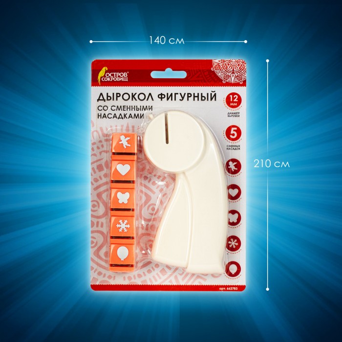 Дырокол фигурный, со сменными насадками, 5 штук, ОСТРОВ СОКРОВИЩ, 662783