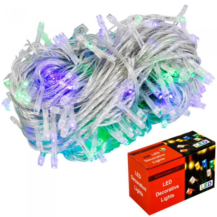 Размер упаковки: 14 х 7 х 9 см Вид упаковки: картонная коробка Функционал: декор, украшения Страна производитель: КНР Материал: металл, полимеры Комплектация: электрическая гирлянда (10 м), 100 ламп Возраст ребенка: 3+ Электрическая гирлянда обязательно создаст волшебную и праздничную атмосферу. Яркие сияющие огни будут красиво мерцать и переливаться в темноте и преобразят не только елку, но и интерьер помещения. Светодиодные гирлянды отличаются особым качеством и долговечностью, они экономичны и безопасны в процессе эксплуатации. На гирлянде 100 ламп. Длина составляет 10 м.