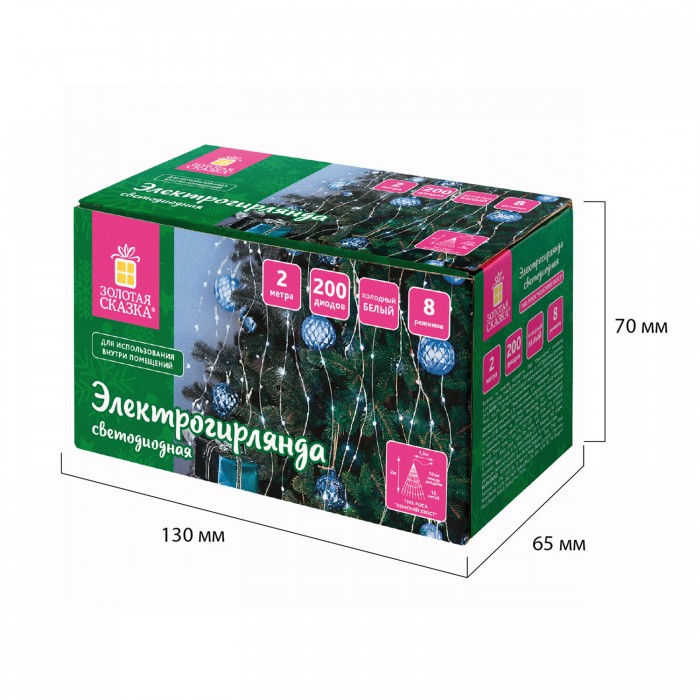 Электрогирлянда-конский хвост комнатная, 2м, 200LED, холодный белый, 220V, ЗОЛОТАЯ СКАЗКА, 591366