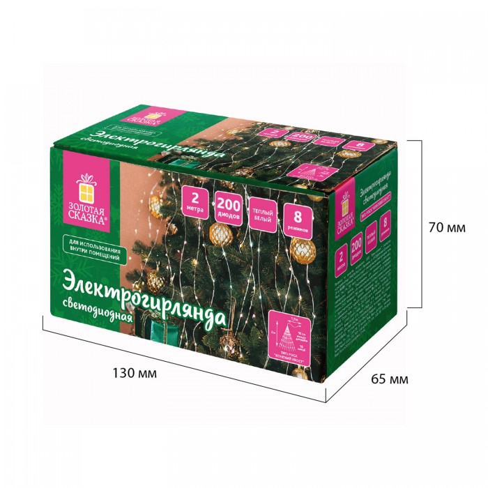 Электрогирлянда-конский хвост комнатная, 2м, 200LED, тёплый белый, 220V, ЗОЛОТАЯ СКАЗКА, 591365