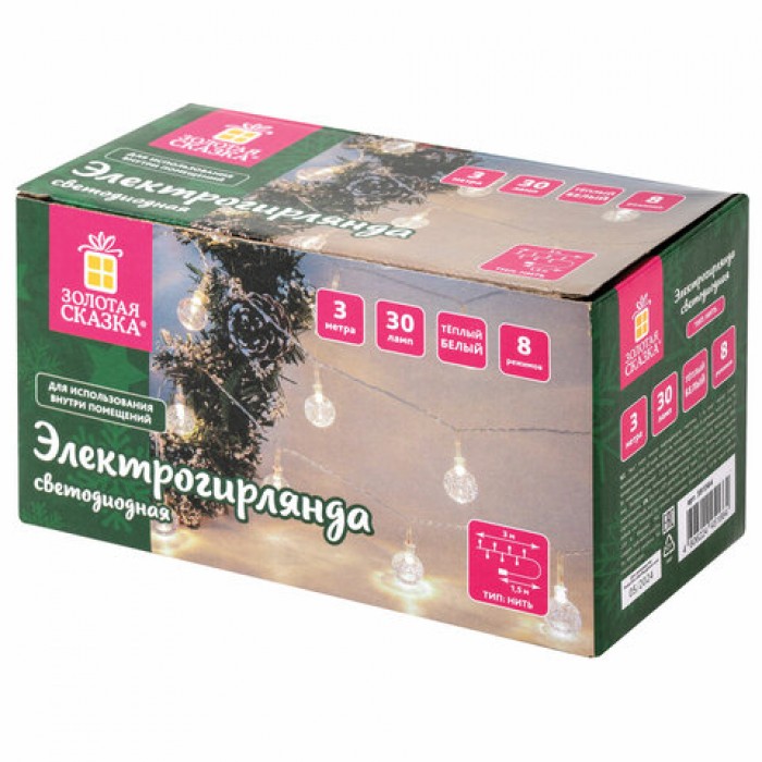 Электрогирлянда-нить комнатная "Bubble ball" 3 м, 30 LED, теплый белый, 220V, контроллер, ЗОЛОТАЯ СКАЗКА, 591364
