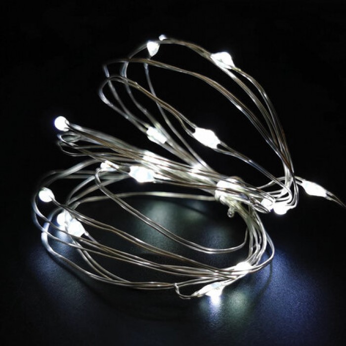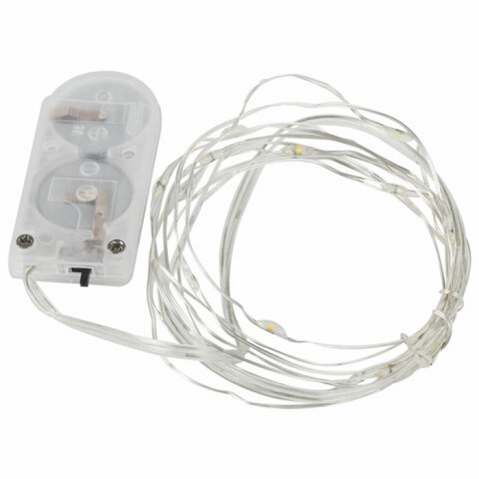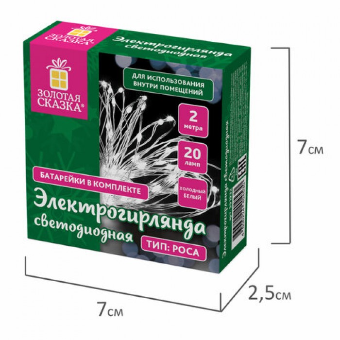 Электрогирлянда-нить комнатная "Роса" 2 м, 20 LED, холодный белый свет, на батарейках, ЗОЛОТАЯ СКАЗКА, 591932