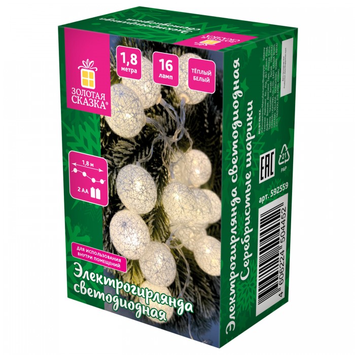 В интернет-магазине AV Group можно купить Электрогирлянда-нить комнатная "Шарики" 1,8м 16LED, серебро, тёплый белый, батарейки ЗОЛОТАЯ СКАЗКА 592559, производитель Китай, артикул 592559 по цене 264 руб. Продаем физическим и юридическим лицам, при условии минимальной суммы заказа (общей суммы в корзине) от 5 тысяч рублей. Возможна доставка курьером по Верхней Пышме, Екатеринбургу и Свердловской области. В регионы отправляем транспортной компанией. Чтобы уточнить необходимое количество товара и дополнительные условия, звоните: 8(800)201-75-47, менеджер вас проконсультирует.