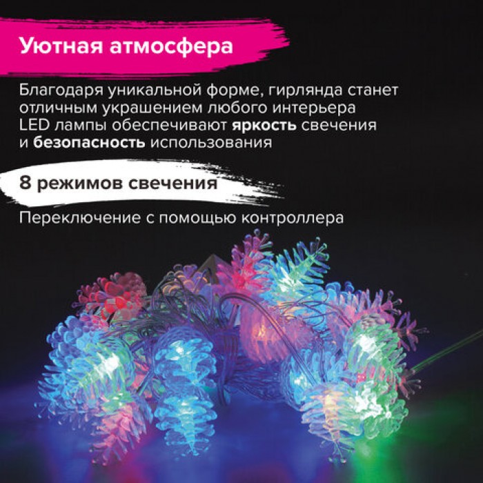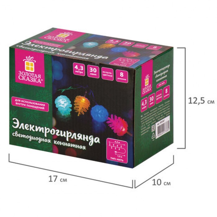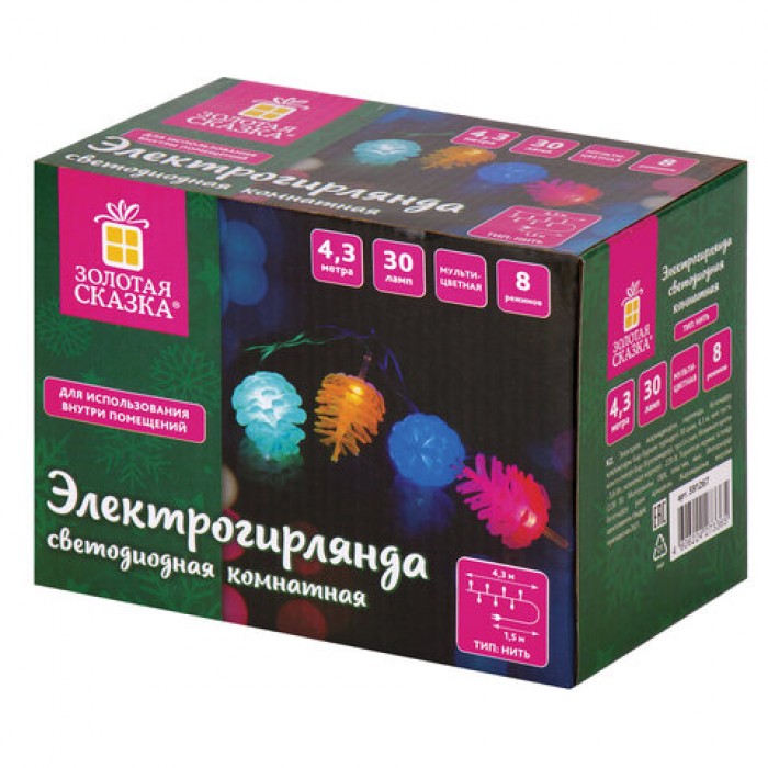 Электрогирлянда-нить комнатная "Шишки" 4,3 м, 30 LED, мультицветная, 220 V, ЗОЛОТАЯ СКАЗКА, 591267