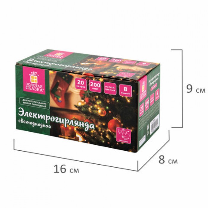 Электрогирлянда-нить комнатная "Стандарт" 20 м, 200 LED, мультицветная, 220 V, контроллер, ЗОЛОТАЯ СКАЗКА, 591358