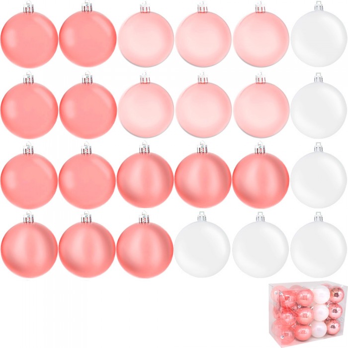 Елочный набор Шары белый, розовый 7см, 24 шт SYQA-0123016