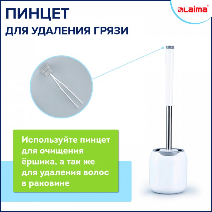 Ершик для унитаза силиконовый ROUND TYPE напольный / настенный с креплением и пинцетом LAIMA, 608133