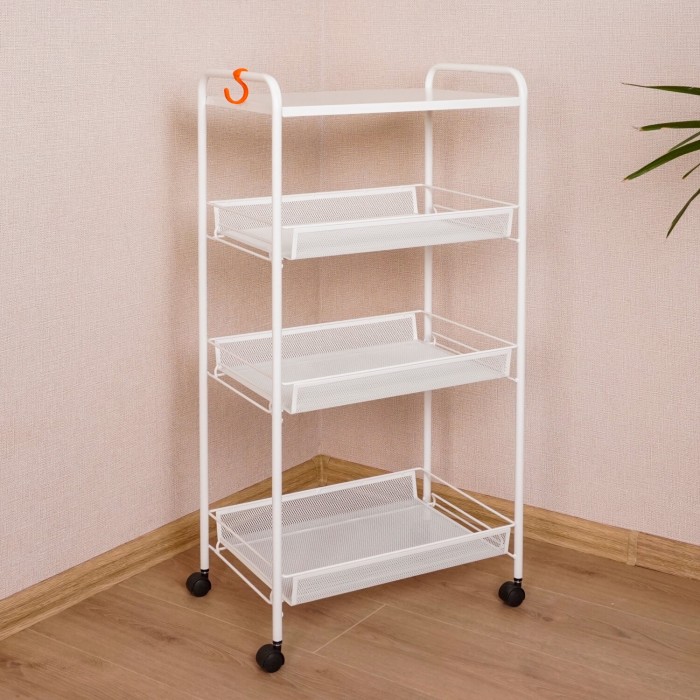 Этажерка "Ладья-34КС" офисно-бытовая 3 яруса+столик, металл, белая, 44,5х30х84 см, Э 357 Б