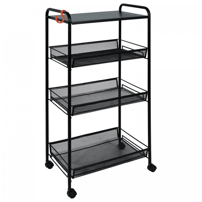 Этажерка "Ладья-34КС" офисно-бытовая 3 яруса+столик, металл, черная, 44,5х30х84 см, Э 357 Ч