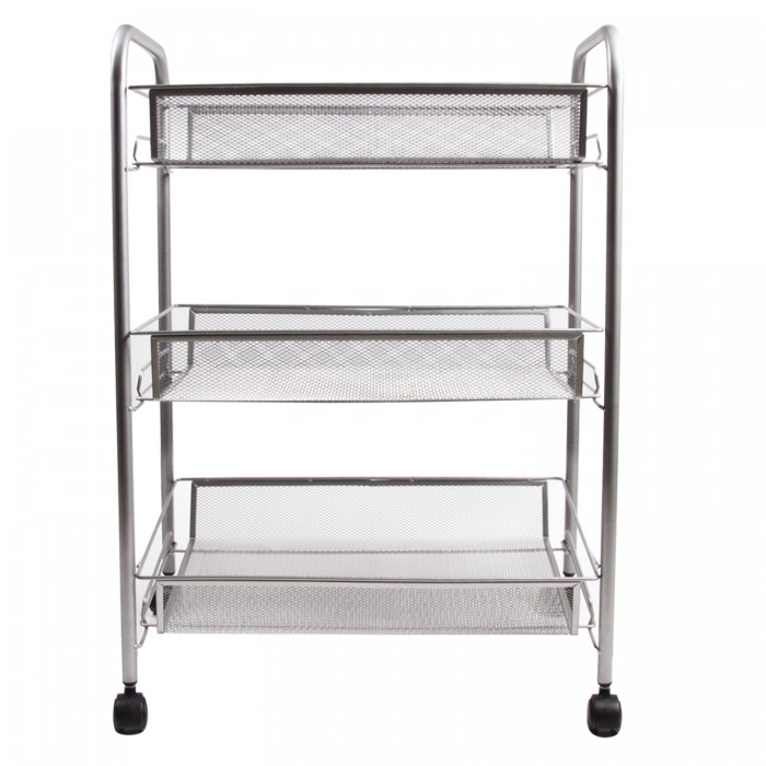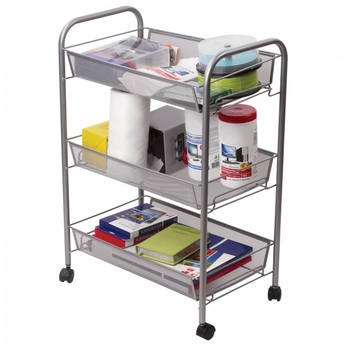 Этажерка (тележка) BRABIX офисно-бытовая 3 яруса, на колесах, металл, серебристая, 43,5х26х62,5 см, 603752