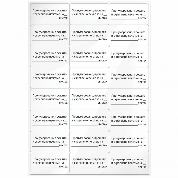 Этикетка самоклеящаяся "Пронумеровано, прошито и скреплено", 70х37 мм, 24 этикетки, 10 листов, 128833