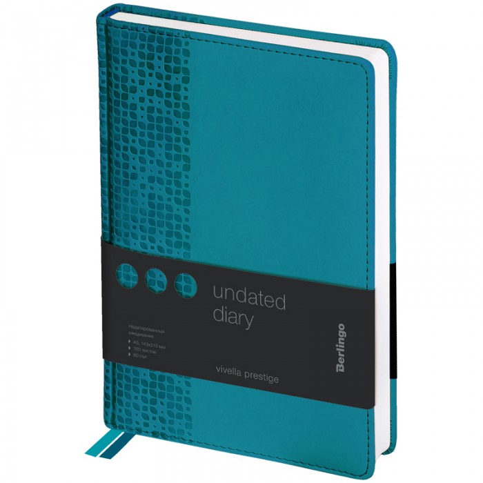 Ежедневник недатир. А5, 160л., кожзам, Berlingo "Vivella Prestige", аквамарин