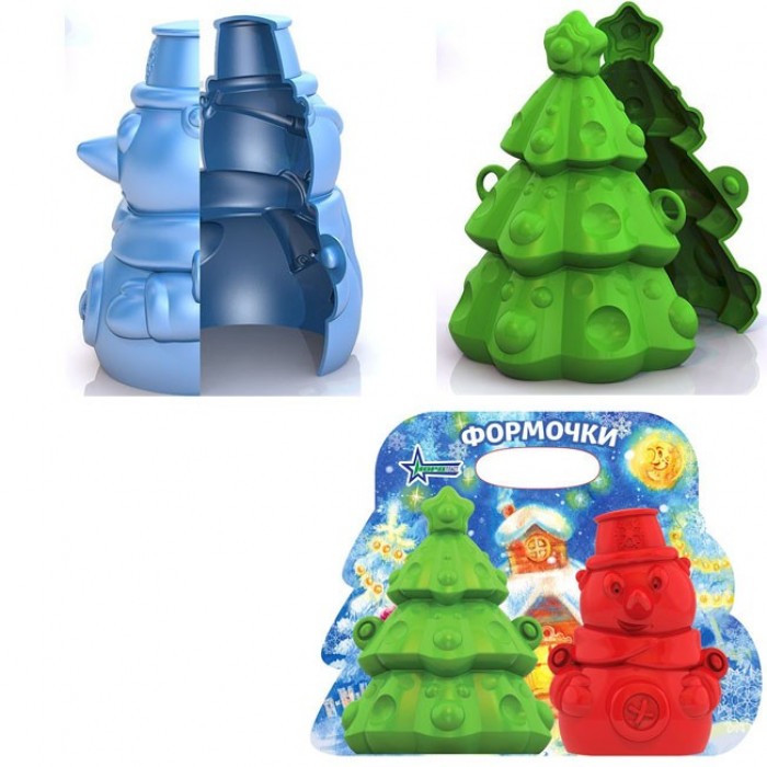 Габариты (ДхШхВ) 25.5 x 12 x 19.5 cm Возрастная группа для детей от 3 лет Новинка зимнего сезона! 3D-формочки для снега! Новое увлекательное развлечение для всей семьи! 3D-формочки состоят из двух половинок. Формочки наполняют снегом, стявят на снег, а затем аккуратно разъединяют и … ура: перед Вами очаровательный Снеговичок или веселая Ёлочка! И не расстраивайтесь, если не успели попробовать формочки зимой: летом, с песком всё получится ничуть не хуже! Играйте, развлекайтесь и развивайтесь!