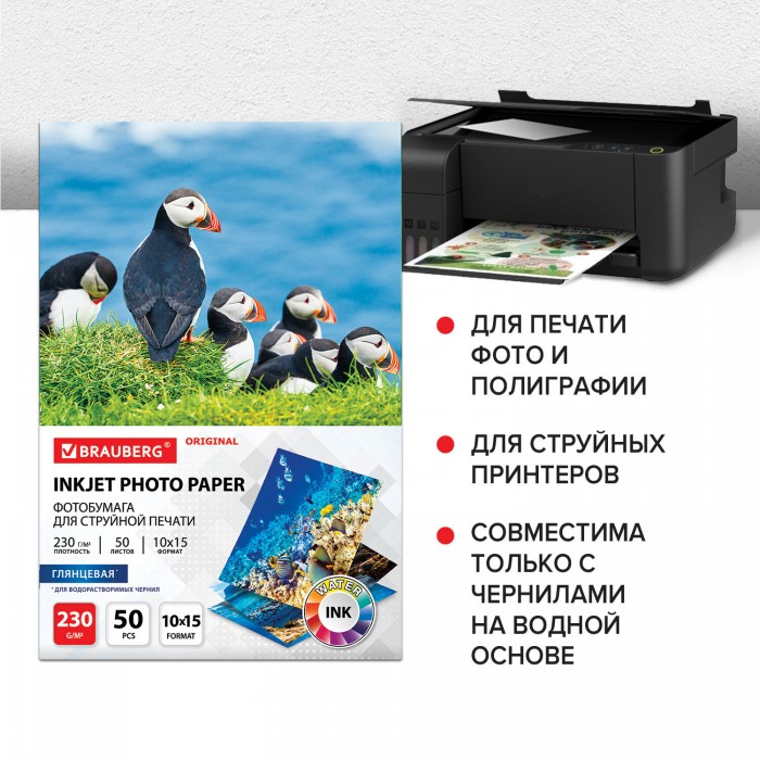 Глянцевая односторонняя фотобумага BRAUBERG подходит для всех типов струйных принтеров. Незаменима для печати ярких фотореалистичных изображений. Передает яркие, насыщенные цвета со множеством оттенков.