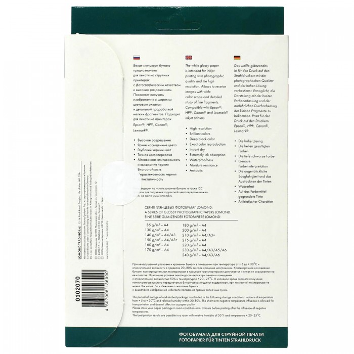 Фотобумага LOMOND для цветной струйной печати. Идеально подходит для печати превосходных ярких изображений с фотографическим качеством, высоким разрешением и глубокой насыщенностью цветов и оттенков.