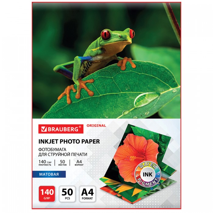 Фотобумага матовая, А4, 140 г/м2, односторонняя, 50 листов, BRAUBERG ORIGINAL, 363983