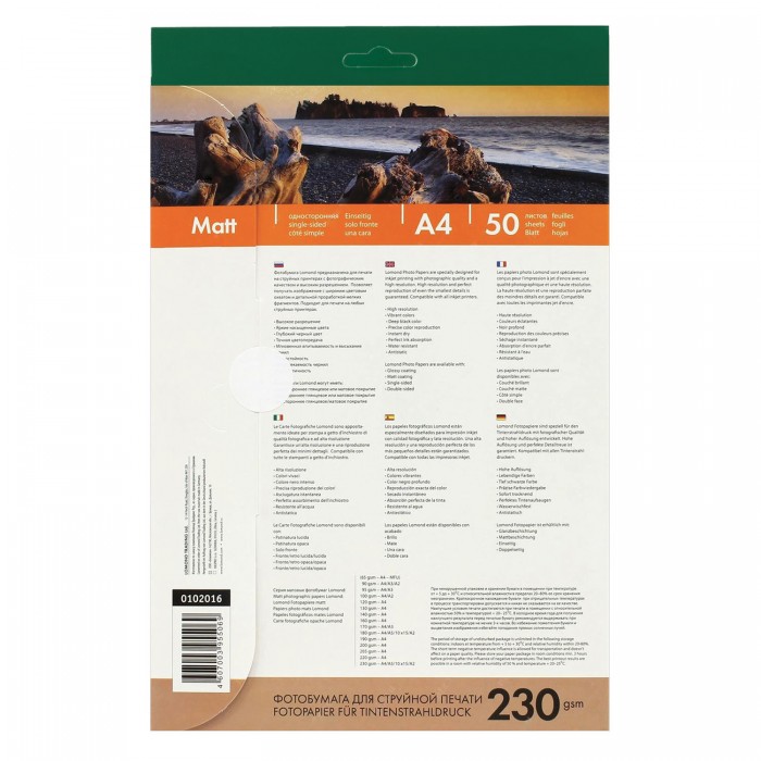 Фотобумага матовая, А4, 230 г/м2, односторонняя, 50 листов, LOMOND, 0102016