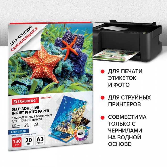 Глянцевая самоклеящаяся фотобумага BRAUBERG подходит для всех типов струйных принтеров. Незаменима для печати ярких фотореалистичных изображений. Передает яркие, насыщенные цвета со множеством оттенков.