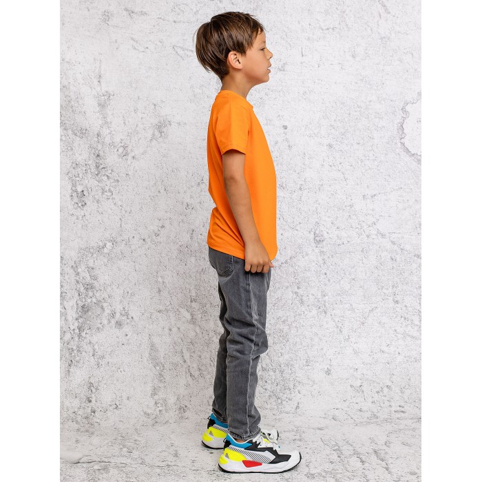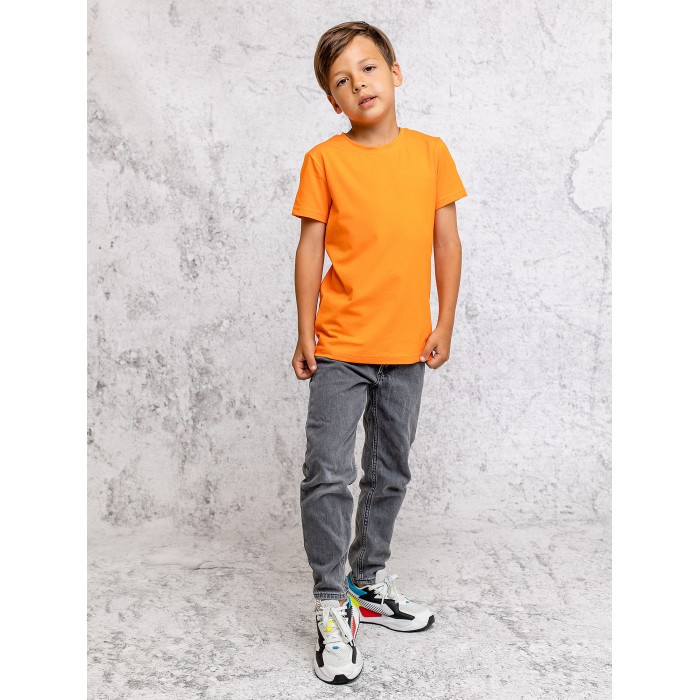 Футболка оранжевая с коротким рукавом для мальчиков и девочек из супрема пенье. Базовая однотонная детская футболка подойдет для спорта, активного отдыха и повседневной носки. Выполнена из натурального хлопка высокого качества.