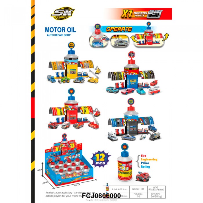 Размер упаковки: 44,5*35,5*18,5 см Функционал: инерционный механизм, раскладная станция, игровой набор Упаковка: пластиковый бокс, картонный шоубокс на 12 шт. Страна обладатель бренда: КНР Материал: пластик Комплектация: гараж, машинки, аксессуары Возраст ребенка: от 3 лет Все мальчишки интересуются техникой, поэтому Вы сделаете чудесный подарок маленькому любителю автомобилей, если преподнесете ему этот интересный набор - гараж и яркие машинки. Миниатюрный гараж представляет собой пластиковую бутылочку, которая раскрывается и превращается в полноценную станцию по обслуживанию автомобилей. Все элементы упаковываются в складной гараж. Такой набо очень удобно брать с собой. Этот набор техники разнообразит игры малыша и позволит создать ряд сюжетов для игр. Модели изготовлены из высококачественных износостойких материалов. Узнаваемая окраска и характерный дизайн делают модели реалистичными и узнаваемыми. Каждая игрушка оснащена инерционным механизмом движения: если машину