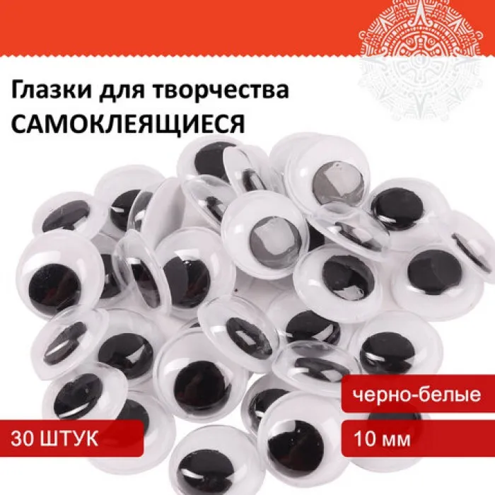 Глазки для творчества самоклеящиеся, вращающиеся, черно-белые, 10 мм, 30 шт., ОСТРОВ СОКРОВИЩ, 661309